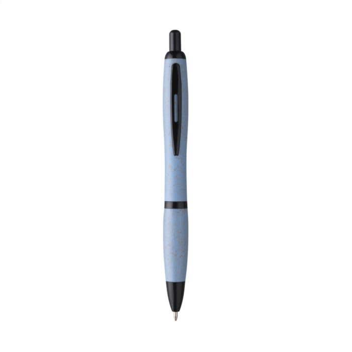 Deze blauwschrijvende balpen van tarwestro is een milieuvriendelijke keuze die je kunt laten bedrukken met je logo. De pen is gemaakt van 50% PP en 50% tarwestro, waardoor hij gedeeltelijk biologisch afbreekbaar is. Met zijn zwarte accenten en metalen clip heeft deze pen een strakke uitstraling. Daarmee is de Athos Wheat-Cycled Pen een verantwoorde oplossing voor op kantoor en tijdens zakelijke afspraken.
