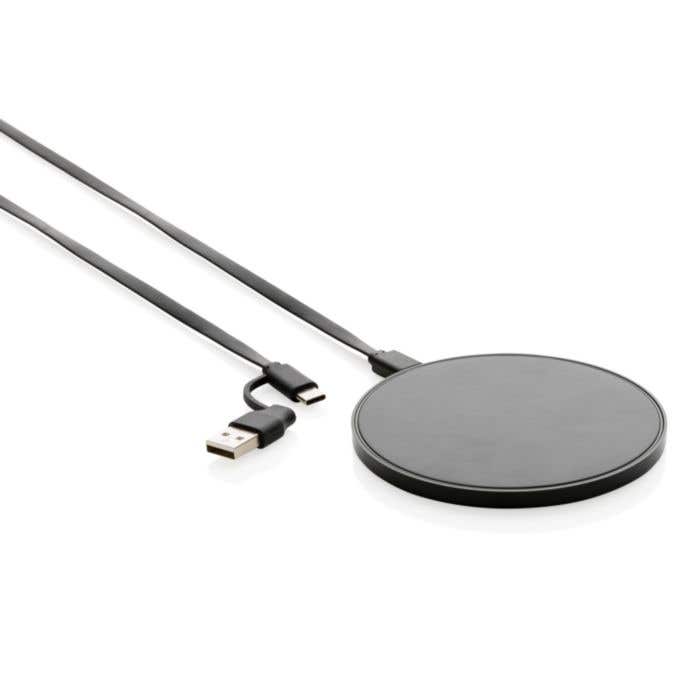 Deze gerecyclede draadloze oplader is een modern relatiegeschenk dat je kunt laten bedrukken met jouw bedrijfslogo. Met een oplaadvermogen van 10W laadt deze slimme oplader snel en efficiënt op. De behuizing is gemaakt van RCS-gecertificeerd gerecycled ABS-plastic, terwijl de bijgeleverde kabel bestaat uit gerecycled TPE. Perfect voor op kantoor of thuis om smartphones draadloos op te laden.