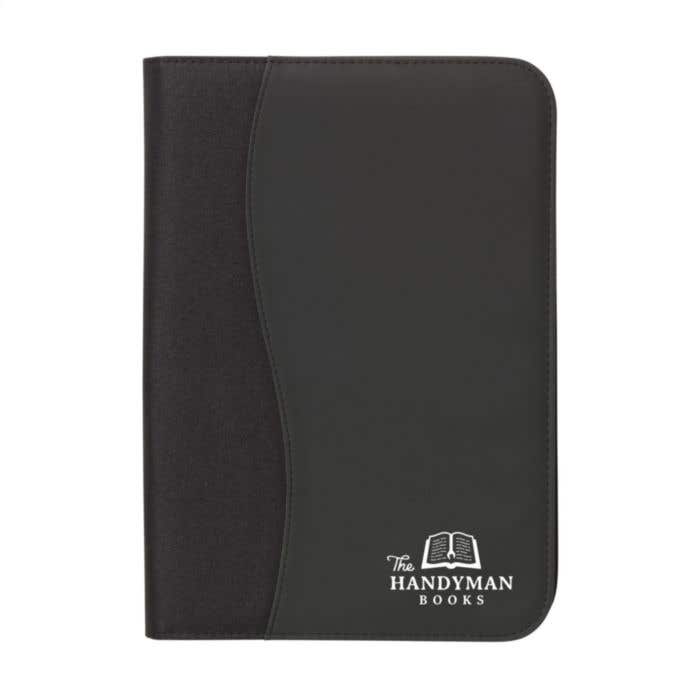 Deze luxe schrijfmap is een elegante A4-map die je kunt laten bedrukken met je eigen logo. De combinatie van 600D polyester en kunstleer geeft de map een hoogwaardige uitstraling. Met meerdere insteekvakken, een extra vak aan de achterkant en een ritssluiting houd je al je documenten netjes geordend. Dat maakt deze schrijfmap ideaal voor vergaderingen en zakelijke afspraken.