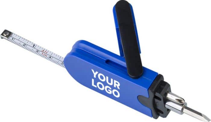 Deze compacte schroevendraaier set met rolbandmaat kun je laten bedrukken met jouw bedrijfslogo. In dit handige gereedschapsetje zitten twee schroevendraaiers (een platte en een kruiskop) en een meetlint van 1 meter. Met zijn afmeting van 9 x 4 x 1,3 cm past dit praktische hulpje in elke zak of tas, ideaal voor kleine klussen en noodreparaties.