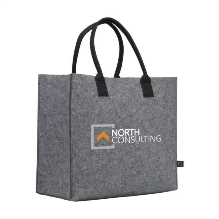 Deze ruime winkeltas van gerecycled rPET vilt kun je laten bedrukken met je logo en is gemaakt van stevig 2 mm materiaal. Met een inhoud van 28 liter biedt de tas enorm veel ruimte voor boodschappen, documenten of andere spullen. De dubbel genaaide draaglussen zorgen voor extra stevigheid en liggen comfortabel in de hand. Daarmee is deze tas een praktische keuze voor dagelijks gebruik en een waardevolle metgezel voor je relaties.